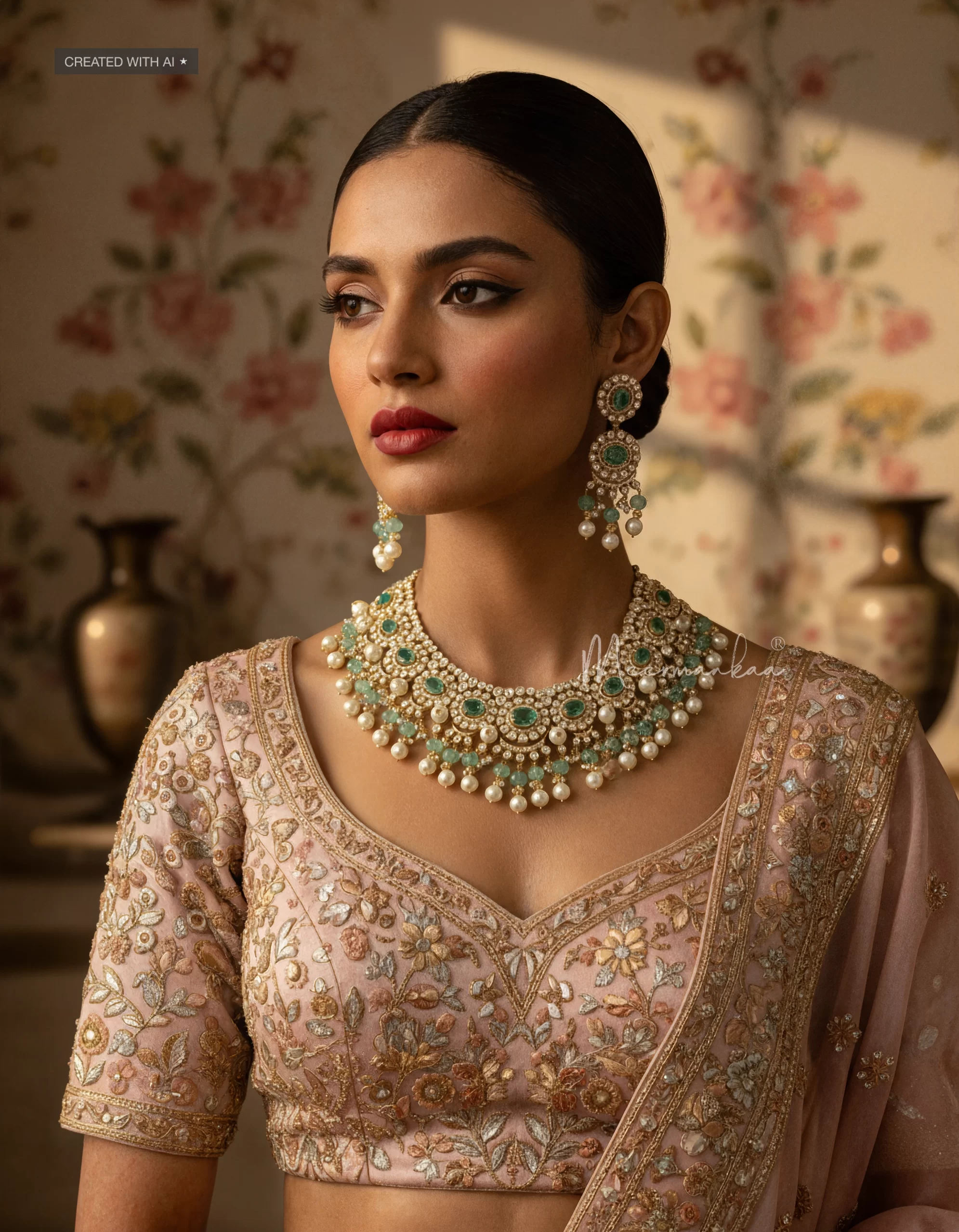 Finished with melon cut Flourites and pearl drops,this set will blend well with the perfect pastel traditional outfits.