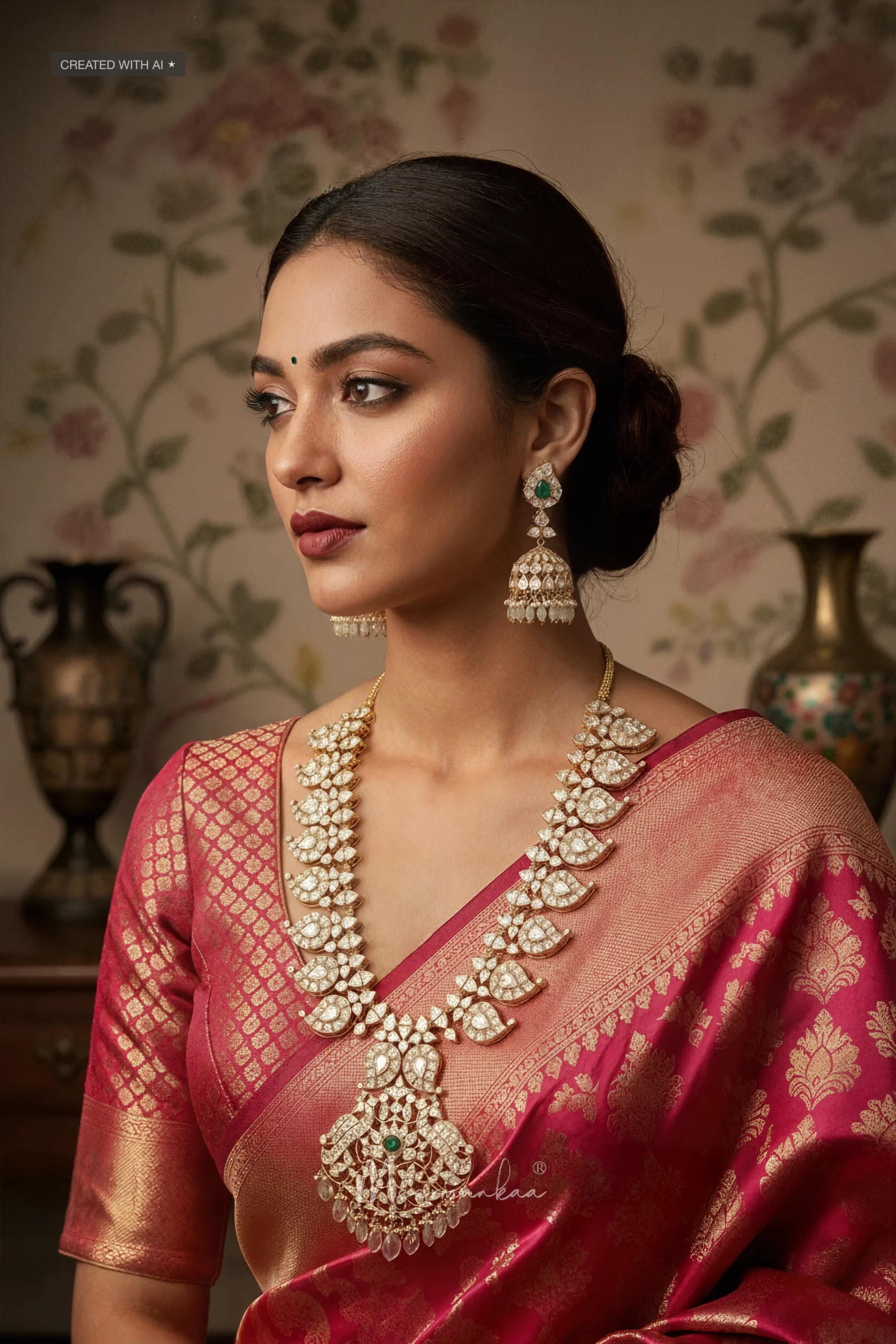 The gold plated Necklace comes with a pair of beautiful jhumkis.
